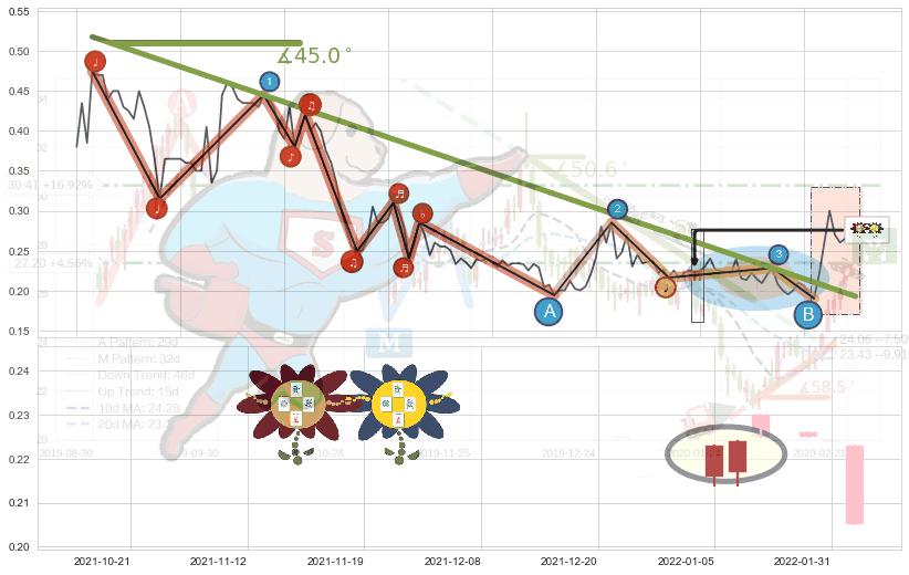 ➣ 2021-03-15-2022-07-19下跌趋势存在反转上涨[机会],其原下跌趋势的阻力位(0.192571)已被突破[强支撑信号],原下跌趋势角度: 45.0˚