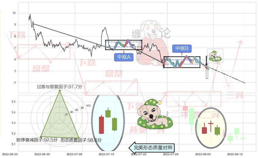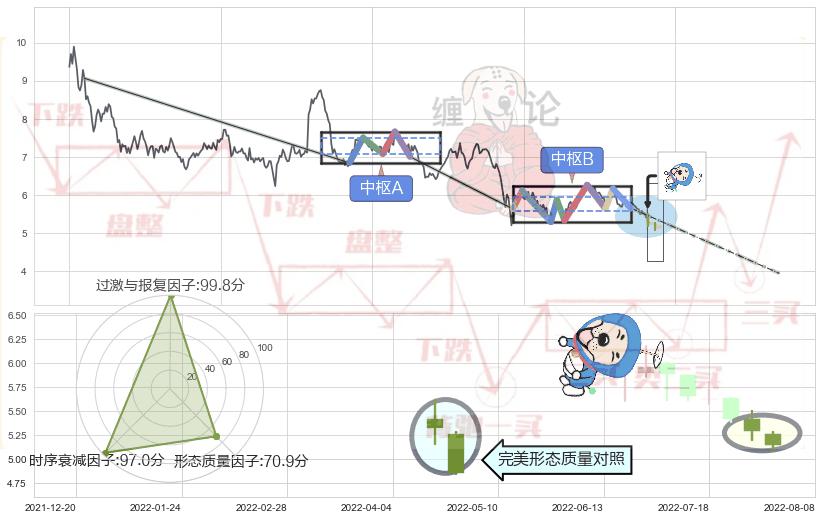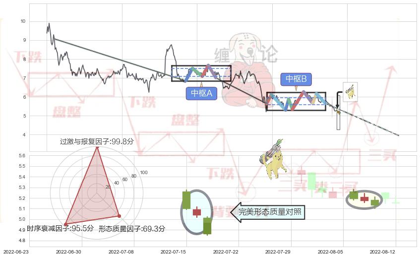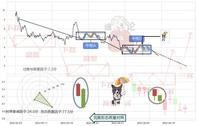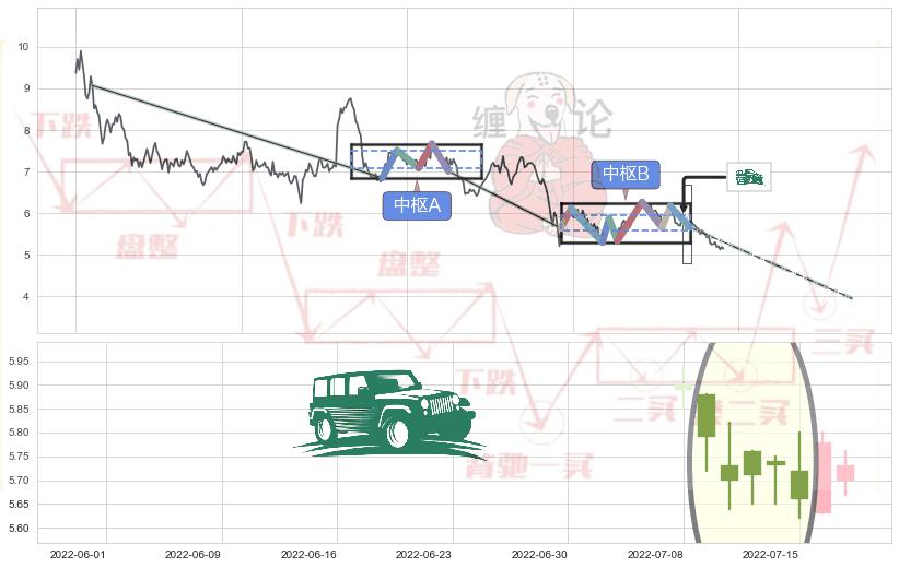 ➢ 【中枢B】:2022-03-16-2022-07-15,中枢由9笔构成,共79交易日, ZG=5.88, ZD=5.66
