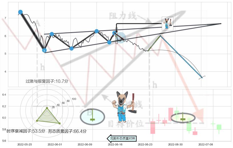 ➢ 【卖1】: 激进型 卖点→(2022-07-12: 5.79 )形成突破升🚩楔型【整理】形态