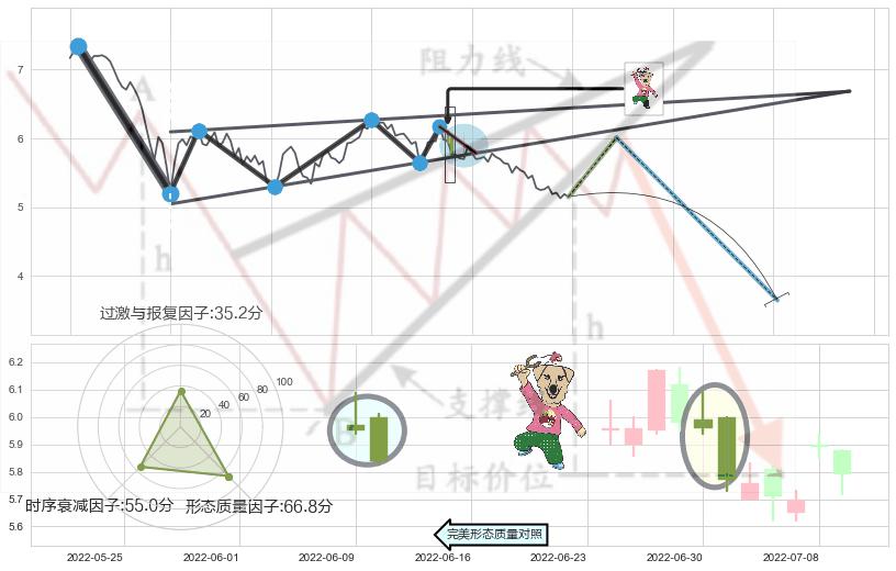 ➢ 🕰 价格走势在2022-06-30至2022-07-04期间形成射击之星形态,残存影响值:-4.29