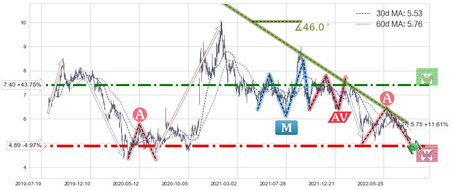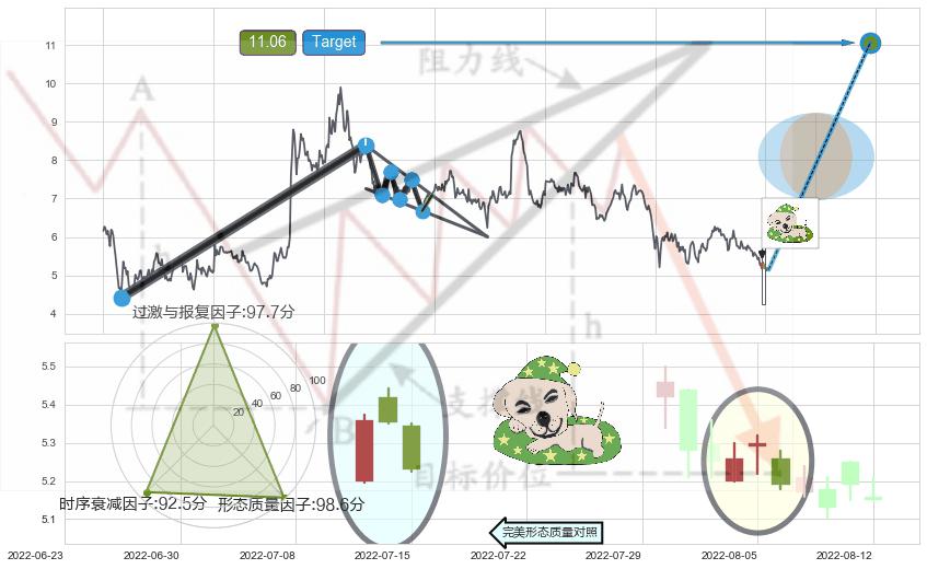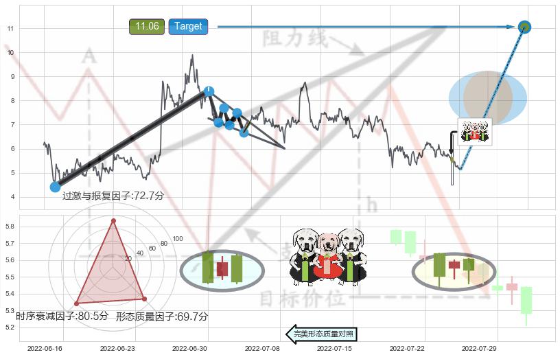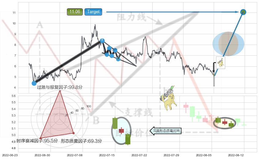 ♘ 阻力价格位7.40,可信任强度74.08%,距离最后交易2022-08-12形成的收盘价格5.15相差 +43.75%