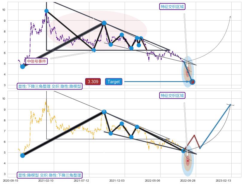 ➣ 【已确认突破】下降三角形整理 起点:2021-01-12,突破点:2022-03-07,形态共284交易日