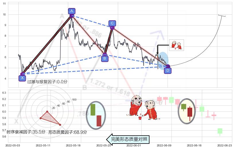 ➢ 锤头线(锤子线) 🔜 谐波伽利d拐点上涨支撑 综合量化分数:54.17 【偏多】