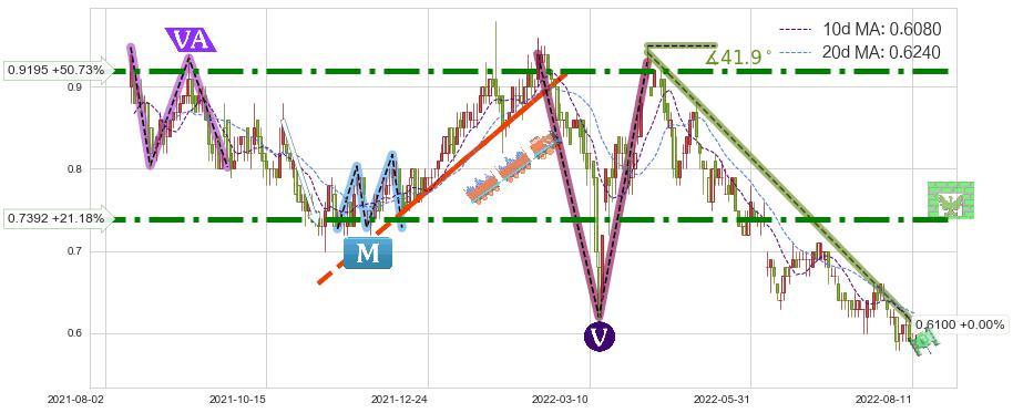 ➣ 预测:2022-08-23,【继续下探】稳定目前下跌趋势的前提下,预测价格:0.5185