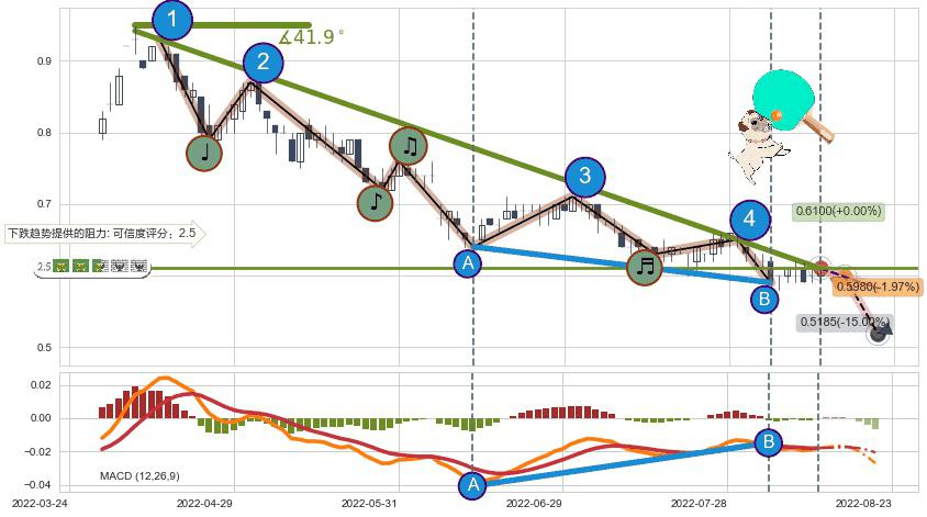 🦴 长线均值回复组合短线趋势跟踪[强阻力信号]2022-04-08-2022-08-12下跌趋势依然成立(下跌趋势跟踪依然存在),短线价格略微上行反弹(均值回复猜想),即将接近下跌趋势提供的未破位阻力价格:0.6100。