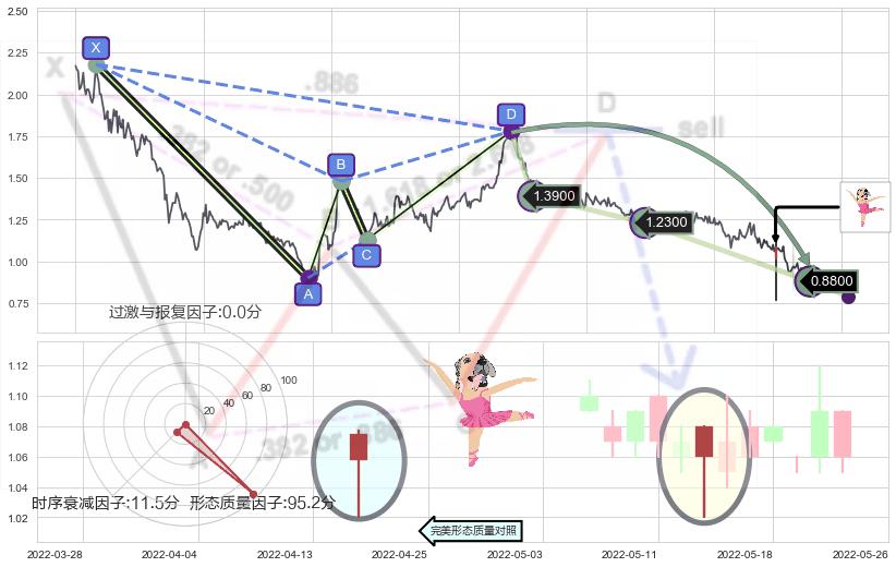 ➢ 🕰 价格走势在2022-05-13至2022-05-13期间形成单针探底(定海神针),残存影响值:1.44