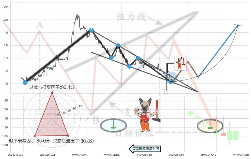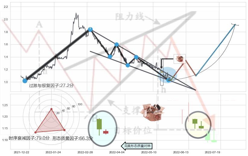 ➢ 🕰 价格走势在2022-06-20至2022-06-27期间形成底部尽头线(上山虎),残存影响值:1.70