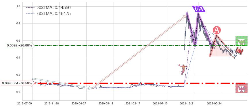 ♘ 阻力价格位0.5392,可信任强度52.56%,距离最后交易2022-08-12形成的收盘价格0.42500相差 +26.88%