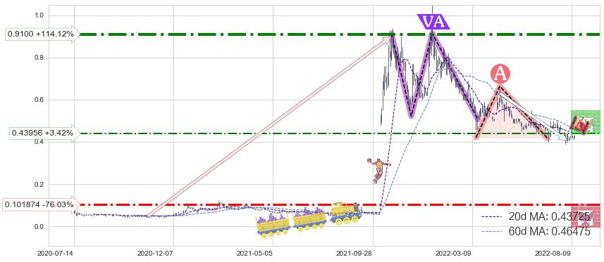♘ 阻力价格位0.9100,可信任强度74.37%,距离最后交易2022-08-12形成的收盘价格0.42500相差 +114.12%