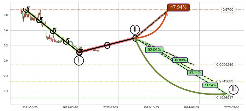 ➢ 循环浪继续向下【最低】位置(2025-03-03, -0.4926917),匹配聚类样本比例22.93%, 可能性概率11.94%