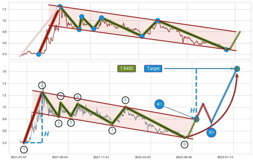 ➣ 最小中继整理涨幅→𝐇: 0.8500 (𝐇旗杆的长度:旗杆起点→顶点)