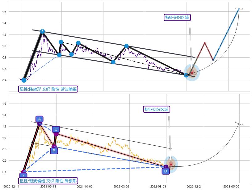 ➣ 【未确认突破,预测即将形成突破】降⚑旗形起点:2020-12-28, 预测突破点:2022-09-09,形态共418交易日