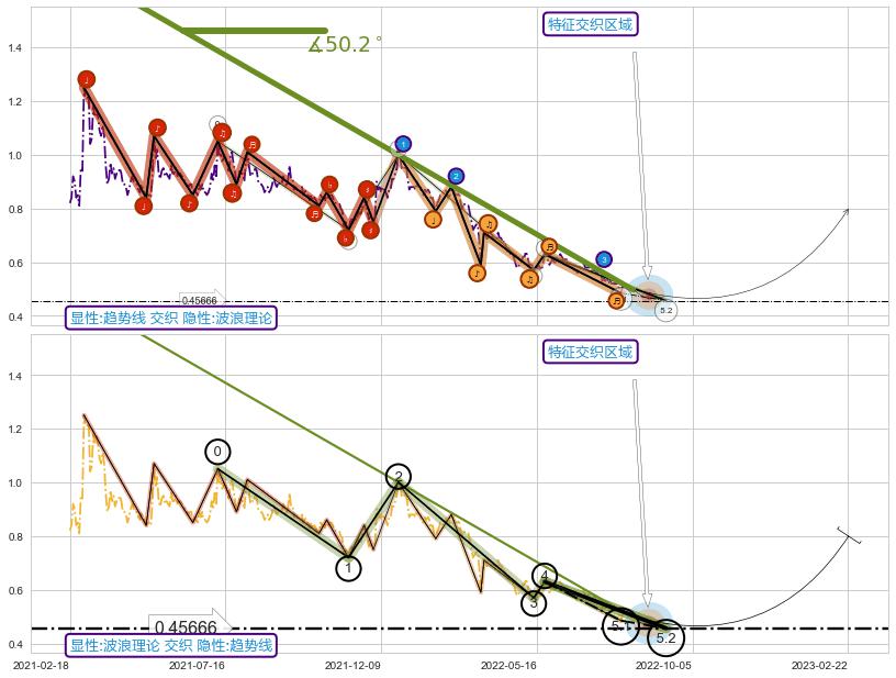 ♘ 在最后的下跌阶段2021-03-03至2022-08-12,存在 破位边缘的阻力位 ,阻力价格0.49667,可信任强度83.41%,其距离最后价格0.5000相差 -0.67%
