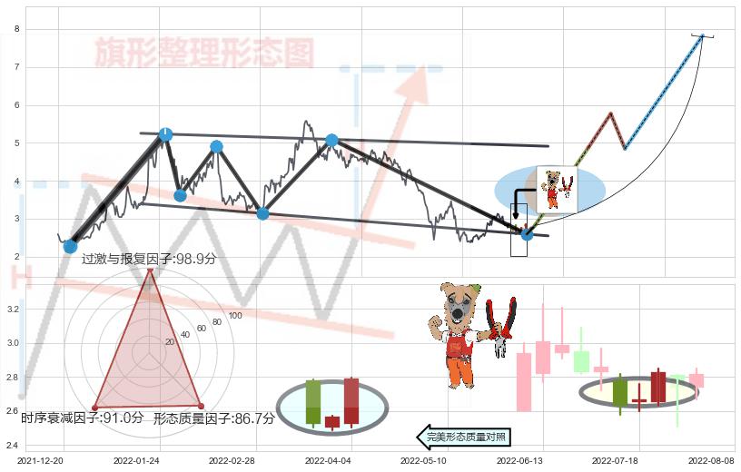 ♘ 支撑价格位2.598,可信任强度91.30%,距离最后交易2022-08-12形成的收盘价格2.820相差 -7.88%