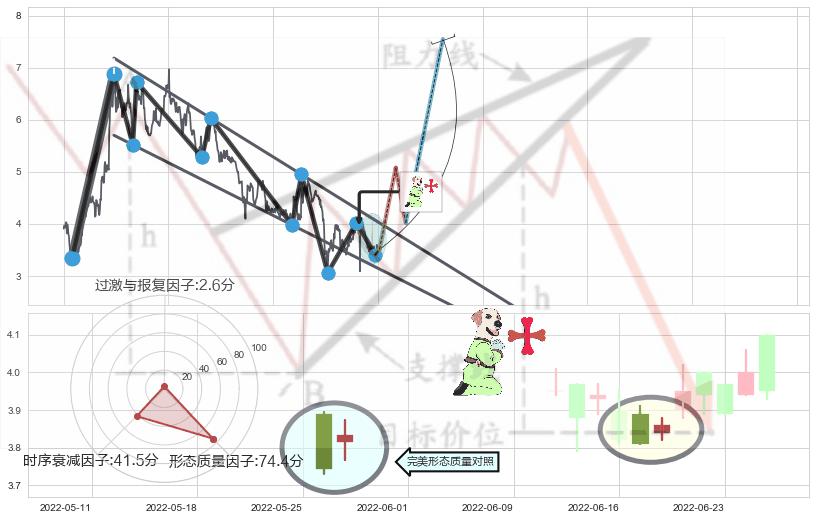 ➢ 🕰 价格走势在2022-07-18至2022-08-01期间形成两红夹一黑,残存影响值:6.14
