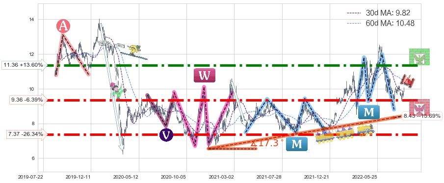 ♘ 支撑价格位9.36,可信任强度91.40%,距离最后交易2022-08-12形成的收盘价格10.00相差 -6.39%