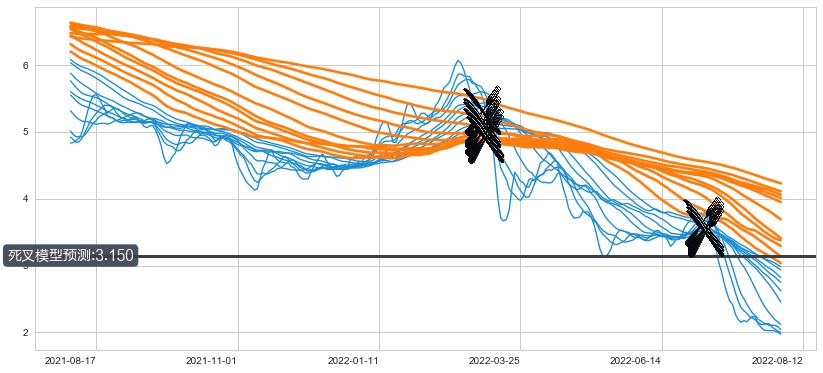 📉 多条均线基于【死叉历史模型】预测最低波谷价格的平均值: 3.150