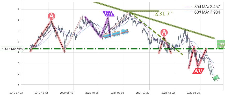 ♘ 阻力价格位4.33,可信任强度82.81%,距离最后交易2022-08-12形成的收盘价格1.9600相差 +120.75%