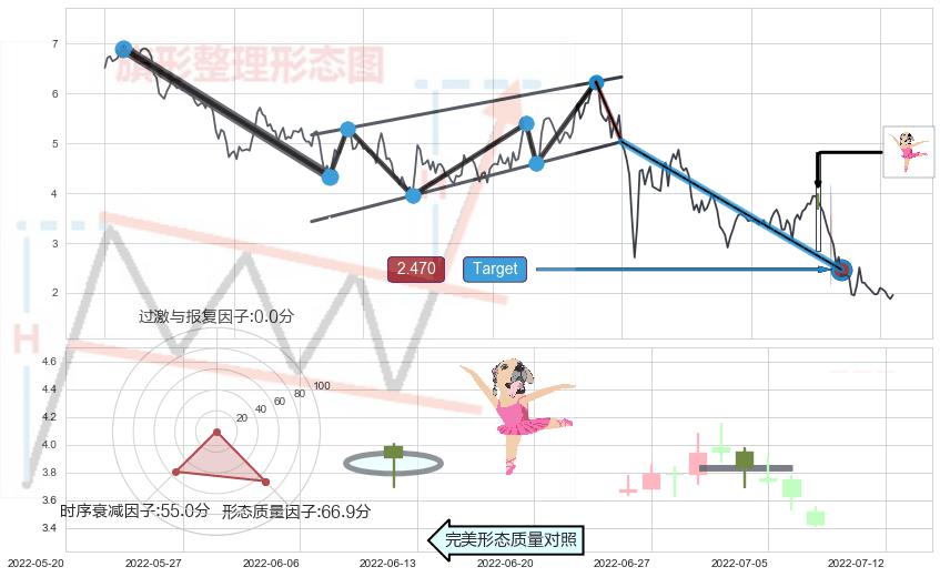 从2021-04-07至2022-08-12,共包含334个交易日,阶段股价下跌-95.78%,阶段股价变动位移路程比: 1 : 11,下跌趋势角度: 22.4
