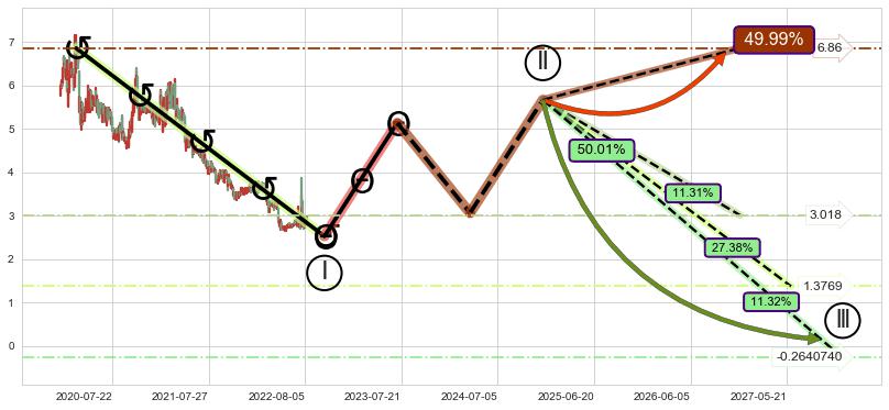 ➣ 循环浪继续向下【平均值】位置(2027-06-07, 1.3769),匹配聚类样本比例54.75%, 可能性概率27.38%