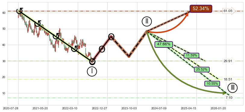 ➣ 大趋势循环浪继续向下概率47.66%