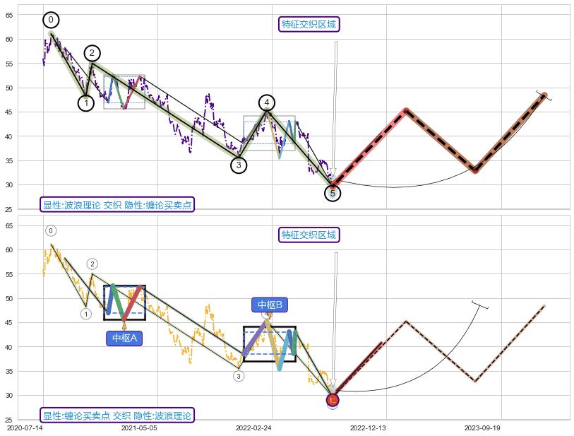 ➢ 缠论买卖点:下降缠中枢AB形成后猜想拐点1买已到达,猜想后续持续拉升(均值回复)