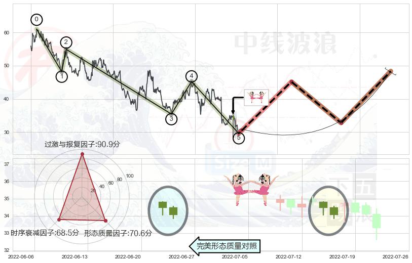 ➢ 曙光初现形态 🔜 波浪理论下跌浪:浪5反弹拐点 综合量化分数:52.70 【中性】