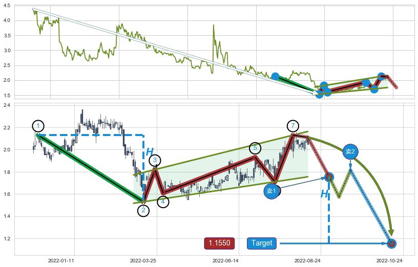 ➢ 【仅预测突破】最后价格:2.110与预测突破价格:1.7550→【空间中等】后续最小【整理】第一目标价格→(2022-10-24: 1.1550 )