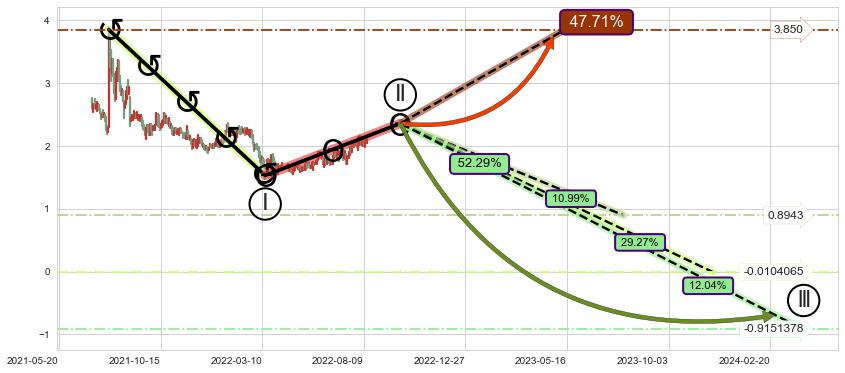 ➣ 循环浪继续向下【平均值】位置(2023-12-04, -0.0104065),匹配聚类样本比例55.97%, 可能性概率29.27%