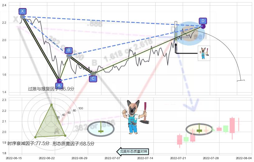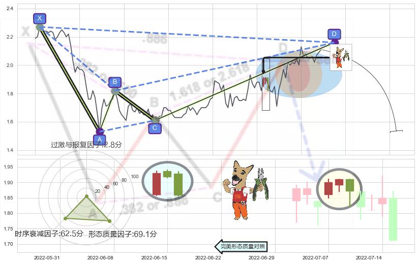 ➣ 未完成【蝙蝠】形态起点X: 2022-02-04, 已到达C点: 2022-04-25, 预测最终D点: 2022-08-22, 共125交易日