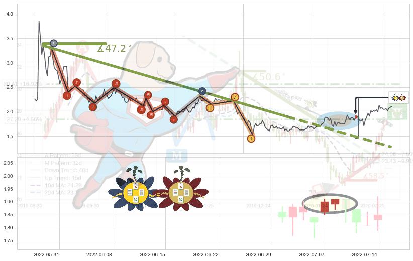 ♘ 阻力价格位2.459,可信任强度73.46%,距离最后交易2022-08-12形成的收盘价格2.110相差 +16.54%