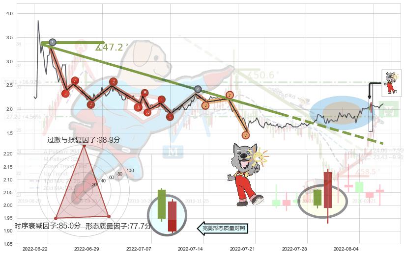 ♘ 支撑价格位1.996,可信任强度59.26%,距离最后交易2022-08-12形成的收盘价格2.110相差 -5.41%