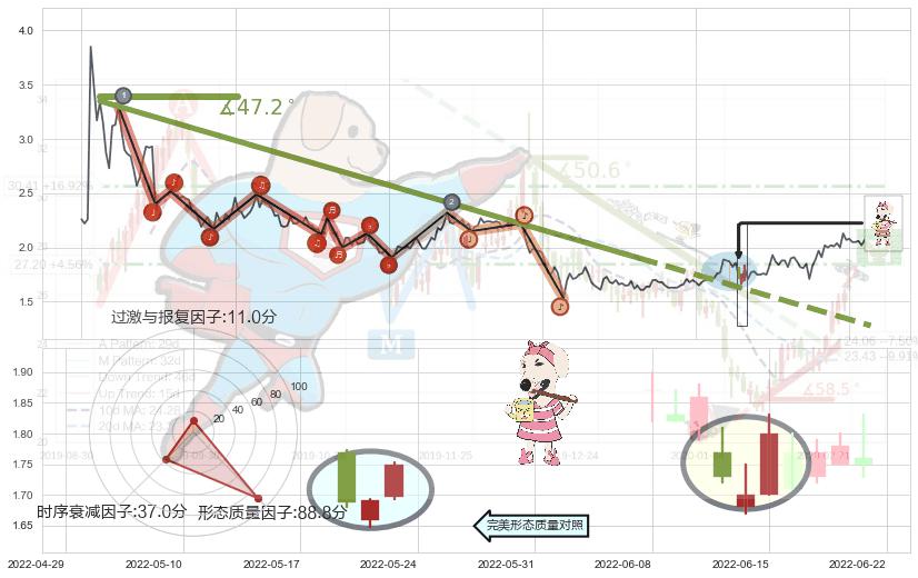 ➢ 🕰 价格走势在2022-06-22至2022-06-22期间形成锤头线(锤子线),残存影响值:2.18