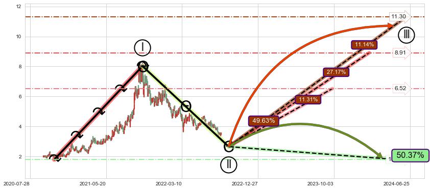 ♘ 支撑价格位2.403,可信任强度97.68%,距离最后交易2022-08-12形成的收盘价格3.540相差 -32.13%