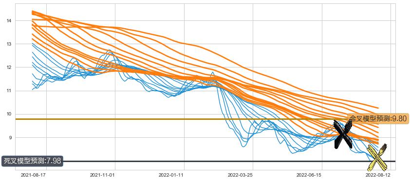 ➣ 34小时均线于(2022-07-07: 9.16)形成【死叉】基于【死叉历史模型】预测死叉后最低波谷价格: 8.18, 死叉后最低价格7.84,已经下跌超出预测最低波谷价格, 预期反弹