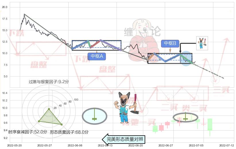 ➢ 趋势线临近恢复下跌趋势 🔜 缠论中枢点破位中枢B支撑下拉 综合量化分数:46.70 【中性】