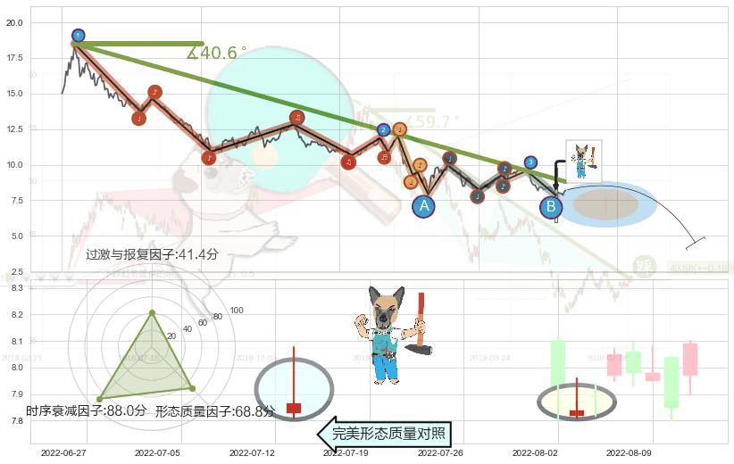 从2021-03-03至2022-08-12,共包含355个交易日,阶段股价下跌-73.61%,阶段股价变动位移路程比: 1 : 7,下跌趋势角度: 40.6
