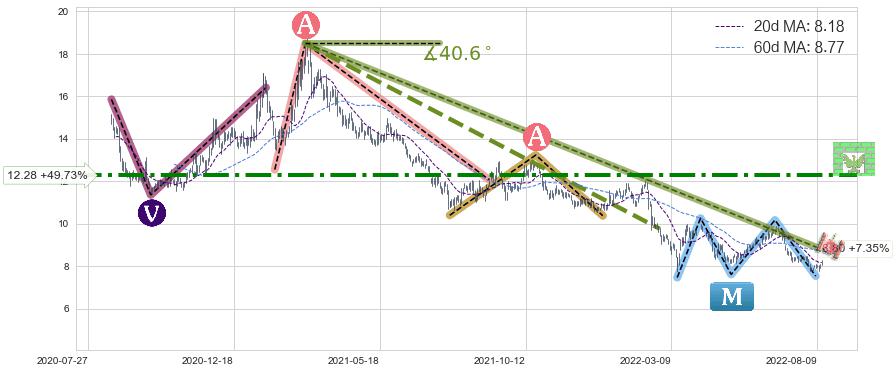 ➣ 【仅预测突破】最后价格:8.20与预测突破价格:9.98→【空间较大】后续最小【反转】第一目标价格→(2022-10-31: 12.12 )