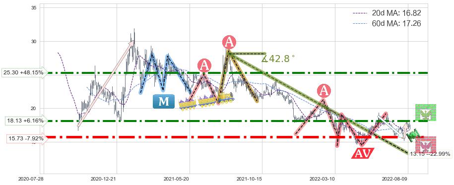 ♘ 阻力价格位18.13,可信任强度83.52%,距离最后交易2022-08-12形成的收盘价格17.08相差 +6.16%