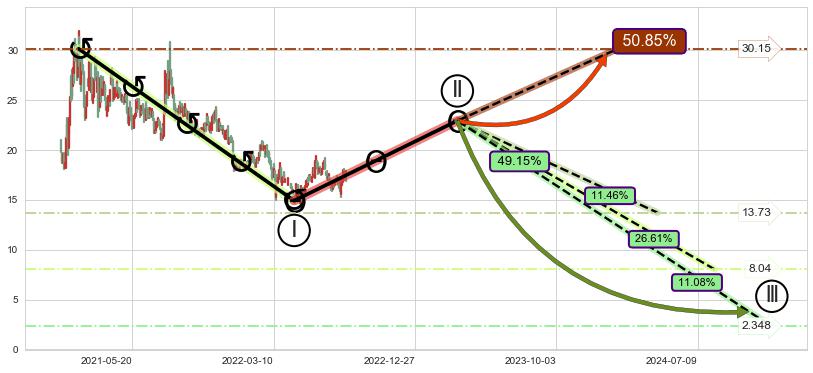 ➢ AI预测: 假定反转如期而至,第❸价格目标位置(2023-01-30, 30.15)