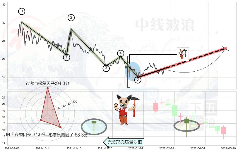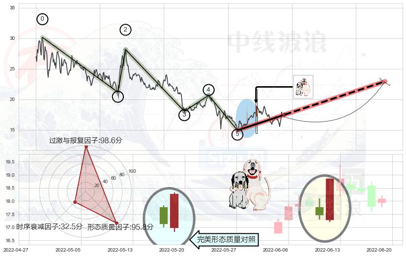 ➣ 锤头线(锤子线) + 波浪理论下跌浪:浪5反弹拐点信号叠加后【目标达成率】中等,【看多】信号叠加【存续影响中等】