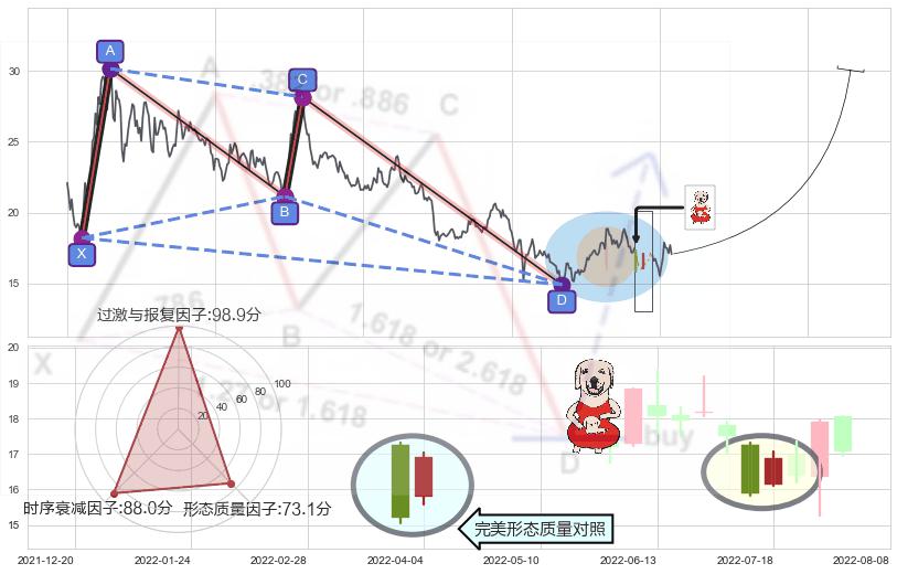 ➢ 上涨身怀六甲 🔜 谐波蝴蝶d拐点上涨支撑 综合量化分数:54.92 【偏多】