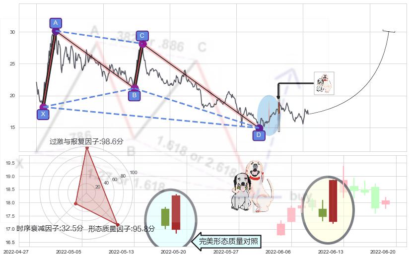 ➢ 阳包阴形态 🔜 谐波蝴蝶d拐点上涨支撑 综合量化分数:53.22 【中性】