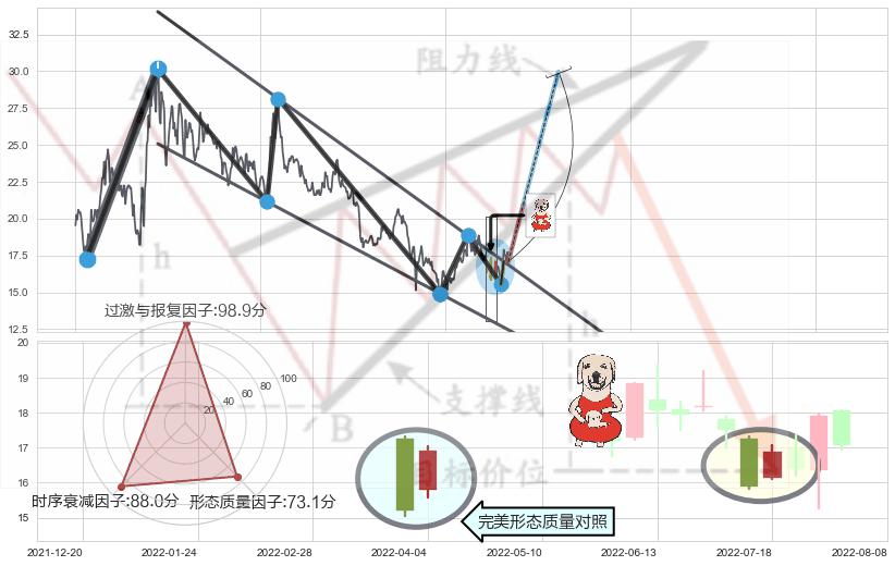 ♘ 支撑价格位15.73,可信任强度94.48%,距离最后交易2022-08-12形成的收盘价格17.08相差 -7.92%