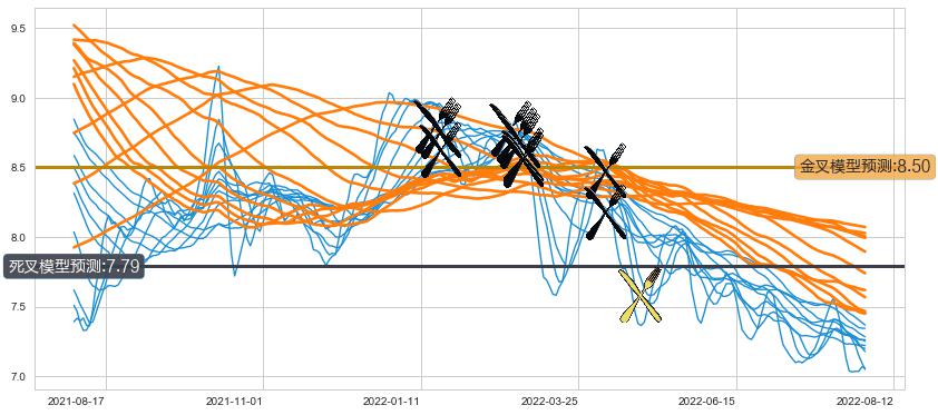 ➣ 60小时均线于(2022-02-28: 8.68)形成【死叉】基于【死叉历史模型】预测死叉后最低波谷价格: 7.80, 死叉后最低价格6.90,已经下跌超出预测最低波谷价格, 预期反弹