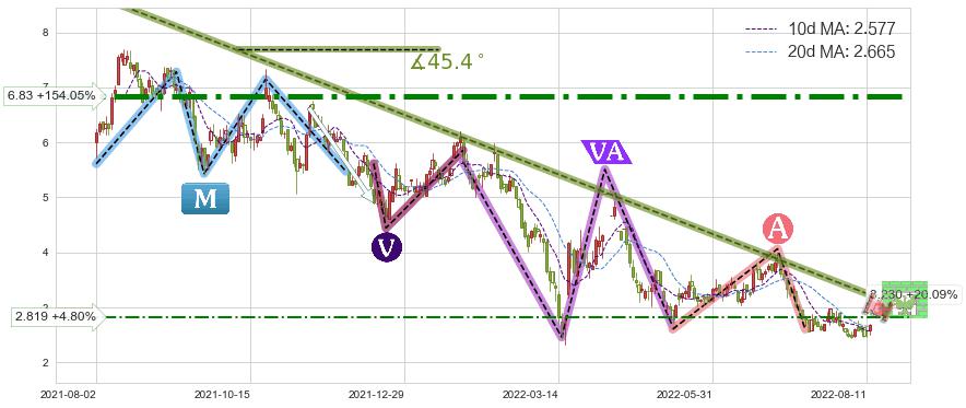 ♘ 阻力价格位2.819,可信任强度53.92%,距离最后交易2022-08-12形成的收盘价格2.690相差 +4.80%