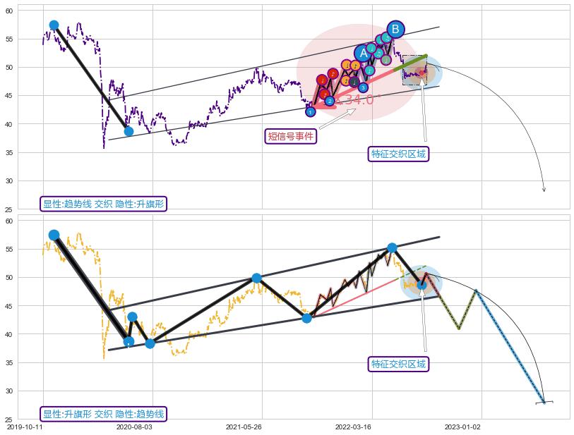 ➢ 趋势线属【短级别信号事件】升旗形属【长级别信号事件】长短周期组合信号事件, 短长事件长度比24.08%
