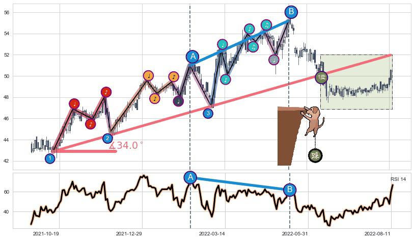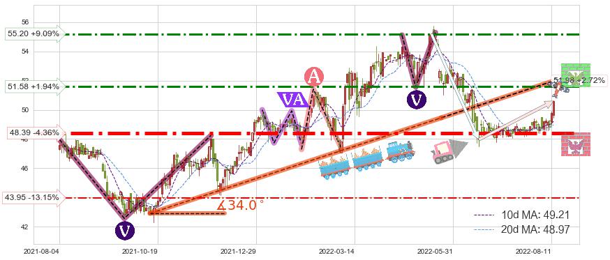 ♘ 阻力价格位55.20,可信任强度64.04%,距离最后交易2022-08-12形成的收盘价格50.60相差 +9.09%