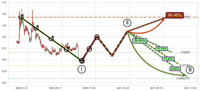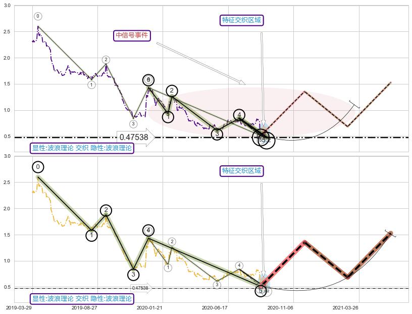 ➣ 循环浪继续向下【平均值】位置(2021-10-27, 0.37205),匹配聚类样本比例48.69%, 可能性概率17.30%