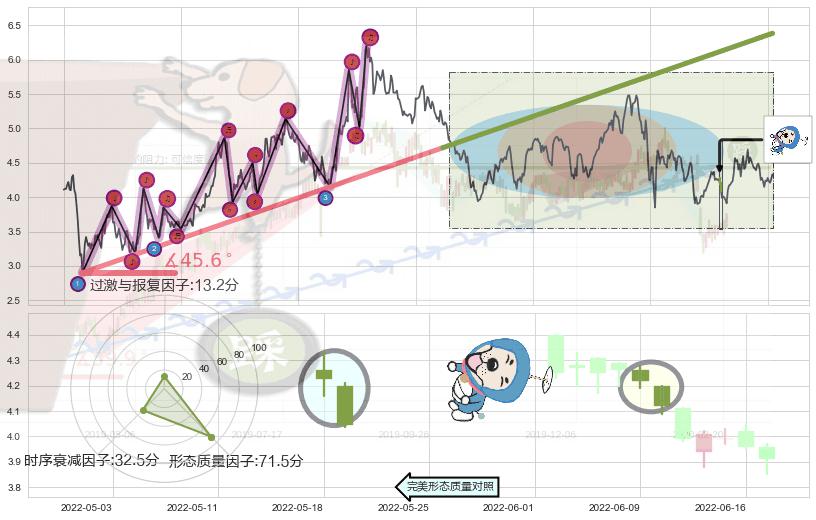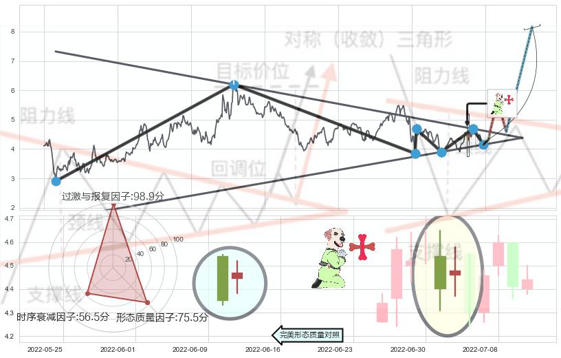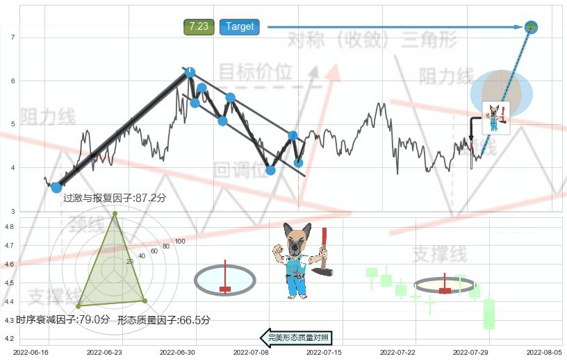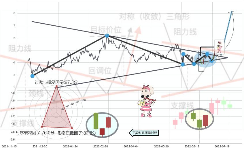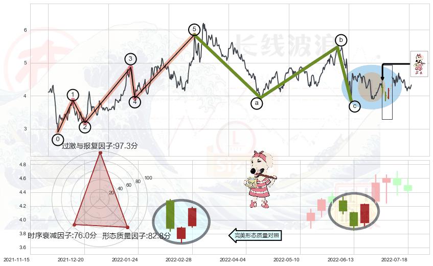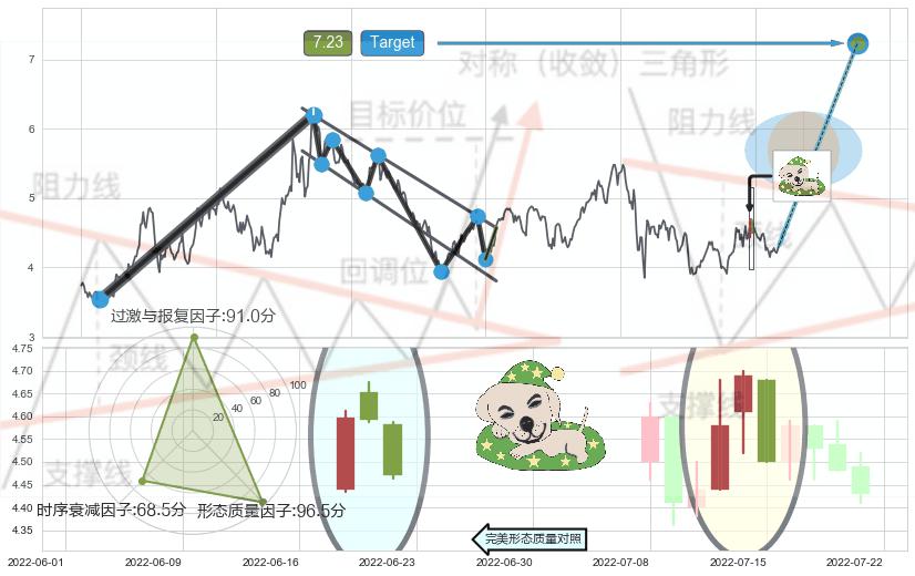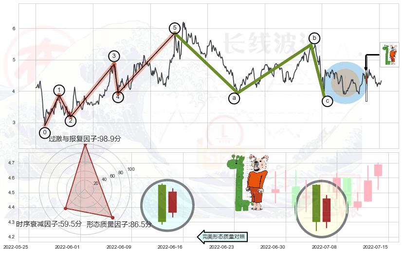 ➢ 🕰 价格走势在2022-07-06至2022-07-07期间形成中流砥柱形态,残存影响值:4.27